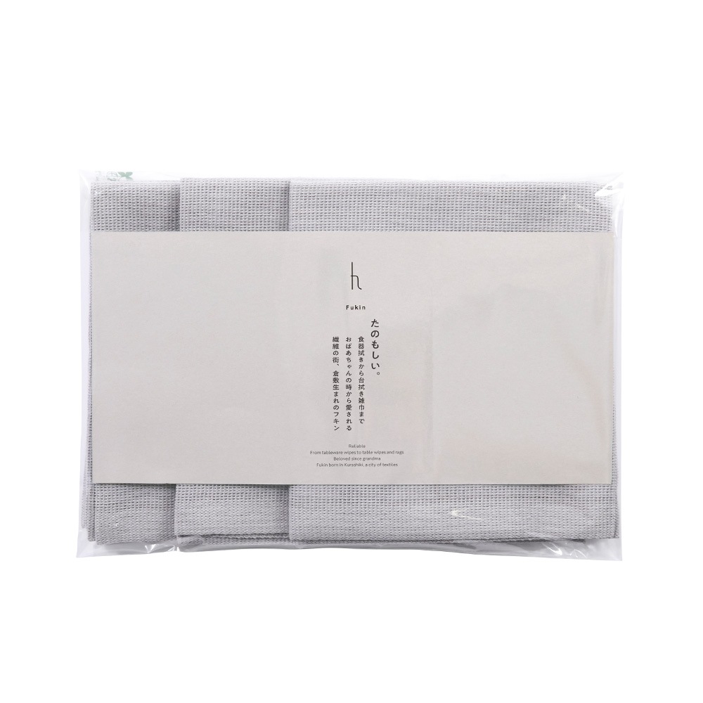 fukin 3pcsフキン 3枚入食器拭きから台拭き雑巾まで 繊維の街、倉敷生まれのフキン ニット編み製法で仕上げた生地は、繊維の街・倉敷で生まれて50年以上が経ちました。布巾のためだけに糸の選定からこだわって編まれてきた生地を現代の暮らしに合わせ、世界に伝えたい日本の文化「fukin」としてデザインしました。 |
