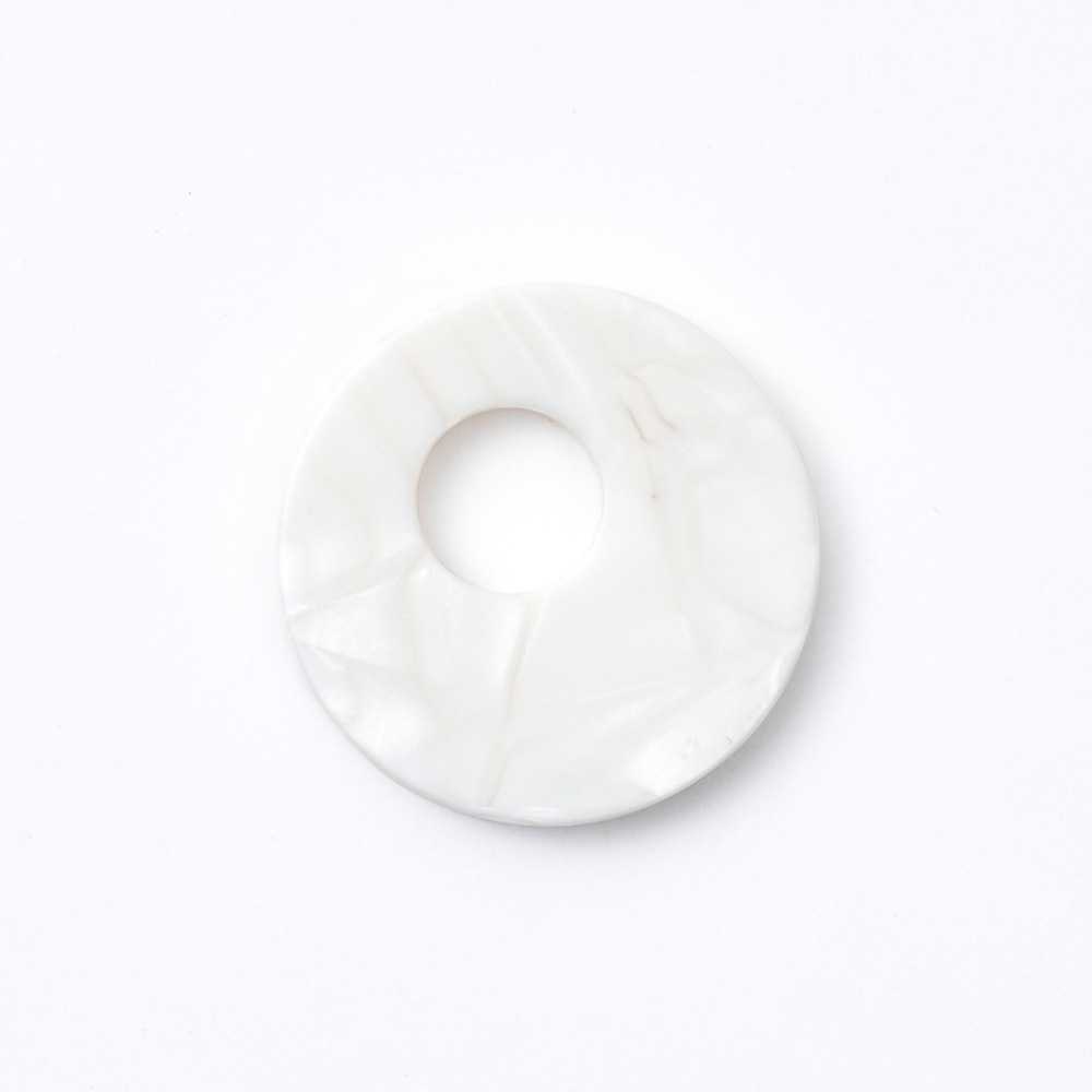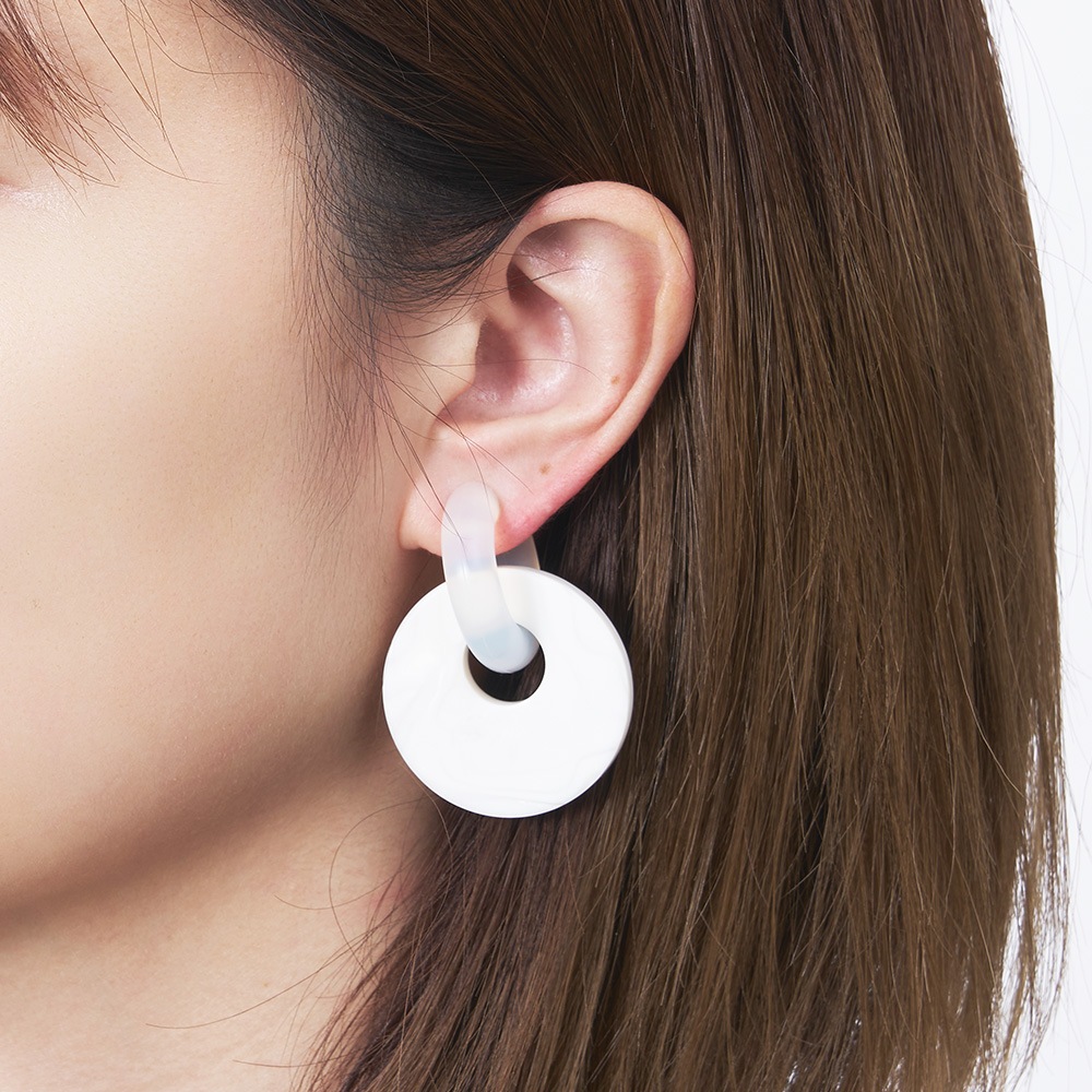 acrylicのGumイヤリングと組み合わせて楽しむイヤリングパーツ。“Sur(サー)”とのコラボレーションモデルです。アクセサリーブランド Surは「めがねのまち」として知られる福井県鯖江市で眼鏡フレームの素材の端材活用をきっかけに生まれました。素材のセルロースアセテートは、綿花やパルプから作られる植物由来樹脂。石油系プラスチックと違い、肌にそっと馴染む優しさと軽さが魅力です。シルキーホワイトは、白の中に少しニュアンスの違う色がミックスされた、白蝶貝や象牙のような独特な質感が上品さを演出します。 デザインを手掛ける “TSUGI(ツギ)” は、福井県鯖江市を拠点に活動するローカルクリエイティブカンパニー。TSUGIという名前は “次” の時代に向けて、その土地の文化や技術を“継ぎ”、新たな関係性を “接ぐ” という思いが込められています。 ※この商品はパーツのみです。イヤリング(2120 Gum earring)は別売りです。 ※模様の出方は個体差があります。 お気に入りのパーツを見つけてカスタマイズしてみてください。